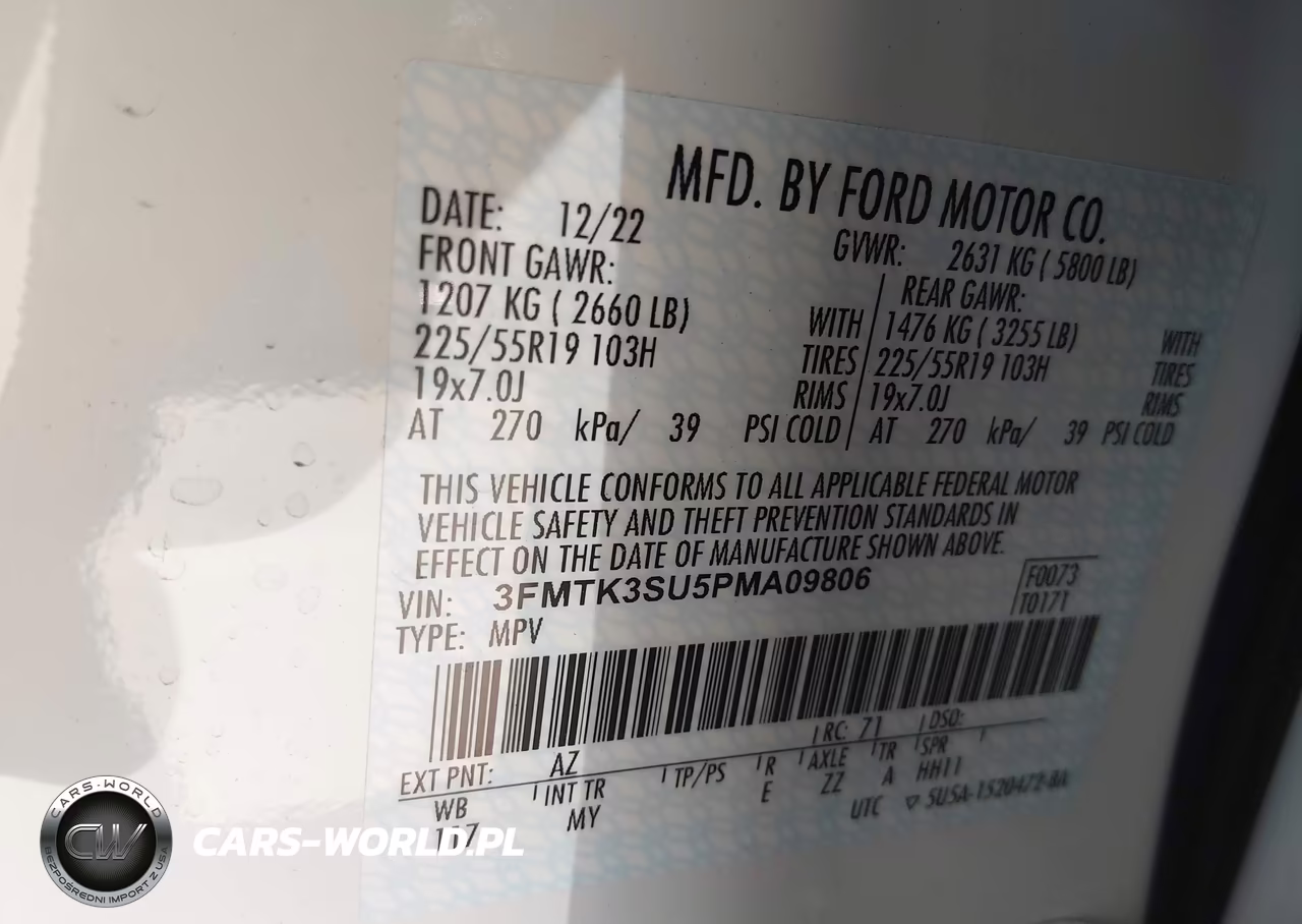 IAAI Nr: I-44620404 VIN: 3FMTK3SU5PMA09806 Port: Los Angeles, CA