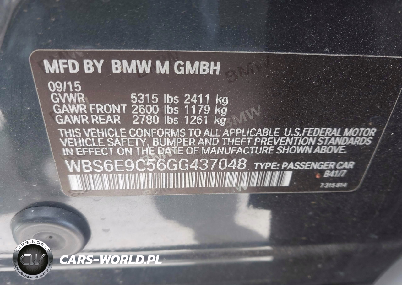 IAAI Nr: I-44621149 VIN: WBS6E9C56GG437048 Port: Houston, TX