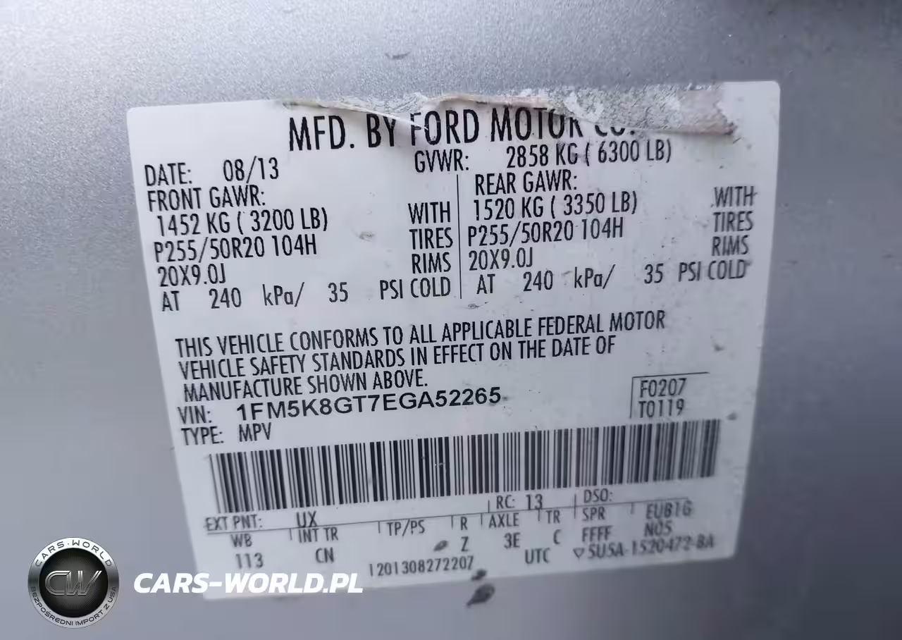 IAAI Nr: I-44621251 VIN: 1FM5K8GT7EGA52265 Port: Elizabeth, NJ