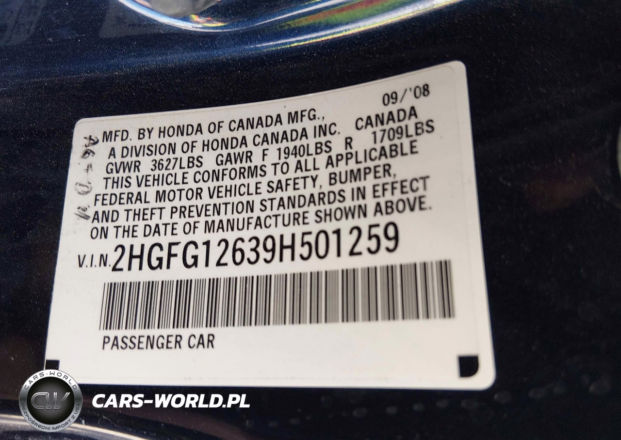 IAAI Nr: I-44621886 VIN: 2HGFG12639H501259 Port: Houston, TX