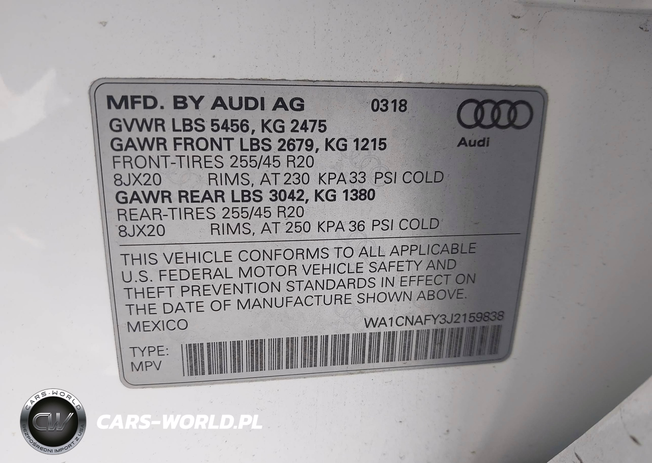 IAAI Nr: I-44622101 VIN: WA1CNAFY3J2159838 Port: Savannah, GA