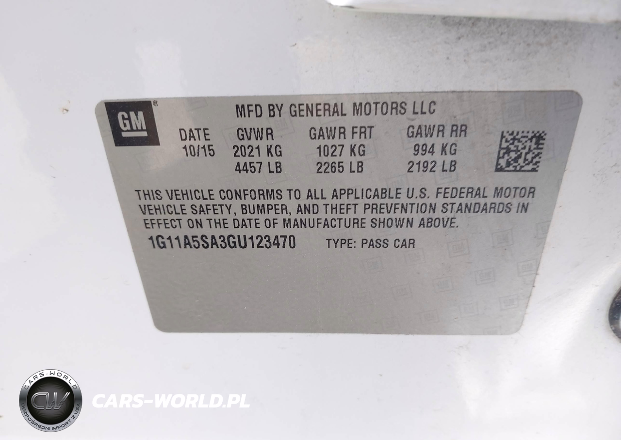 IAAI Nr: I-44622270 VIN: 1G11A5SA3GU123470 Port: Indianapolis, IN