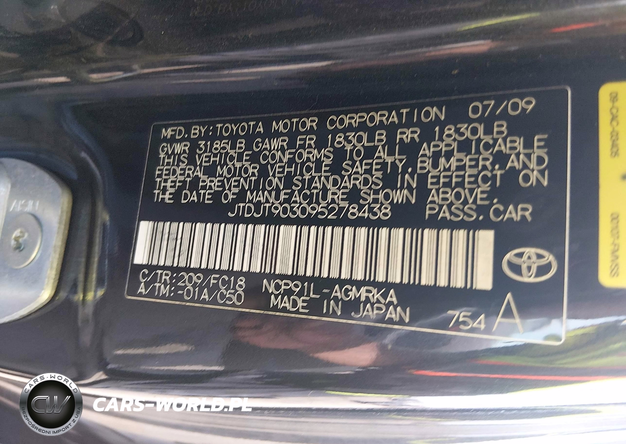 IAAI Nr: I-44622448 VIN: JTDJT903095278438 Port: Los Angeles, CA