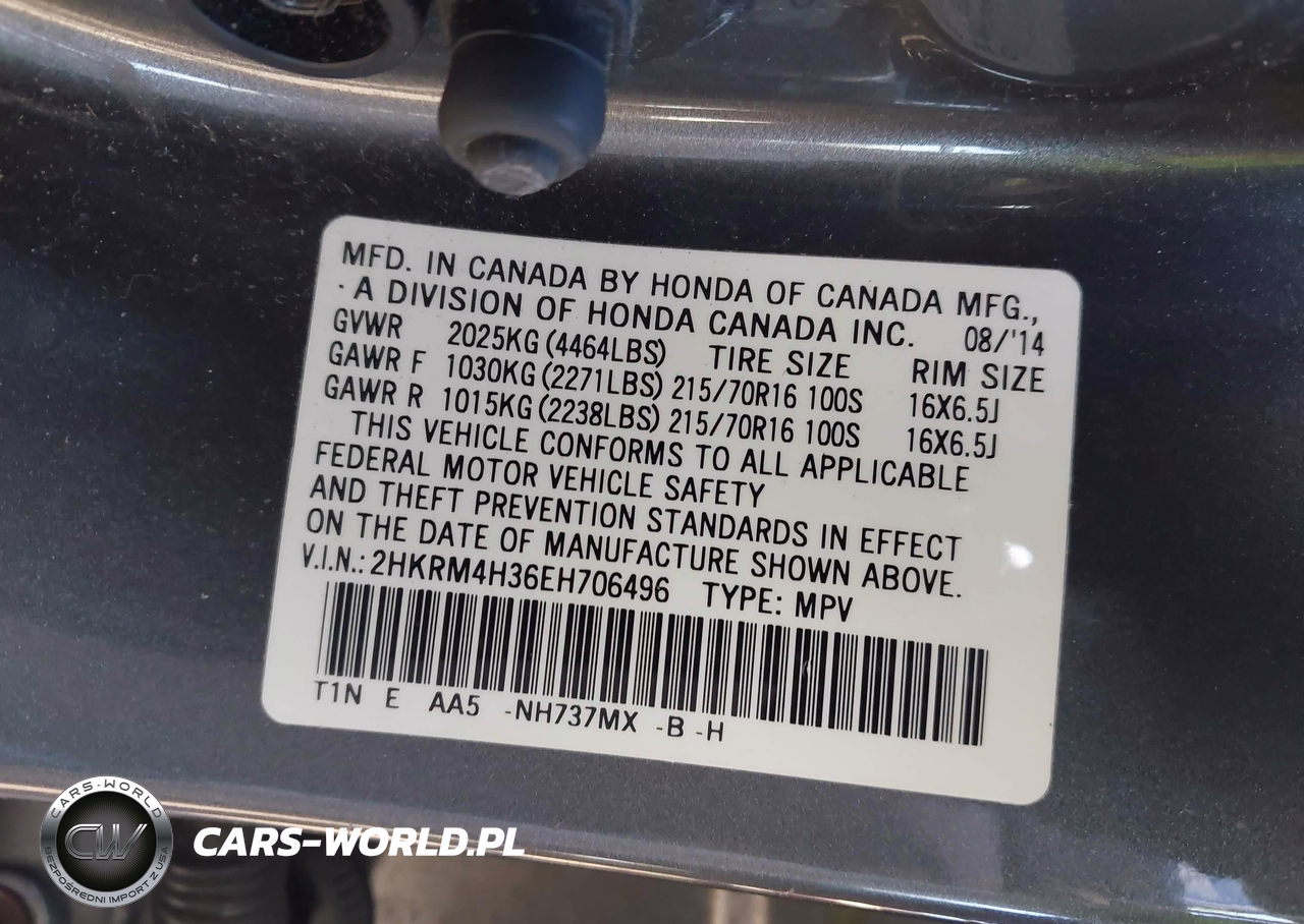 IAAI Nr: I-44623155 VIN: 2HKRM4H36EH706496 Port: Elizabeth, NJ