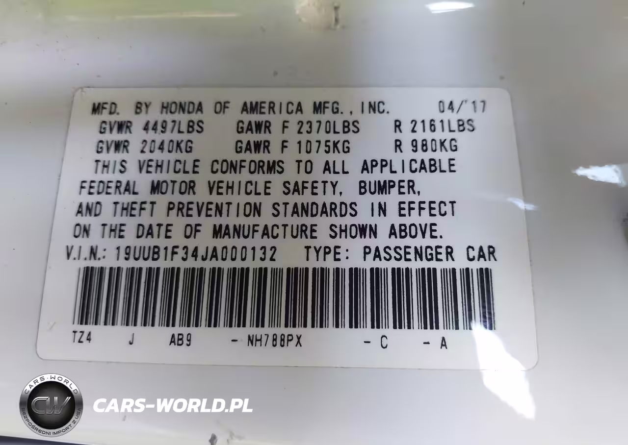 IAAI Nr: I-44623302 VIN: 19UUB1F34JA000132 Port: Los Angeles, CA