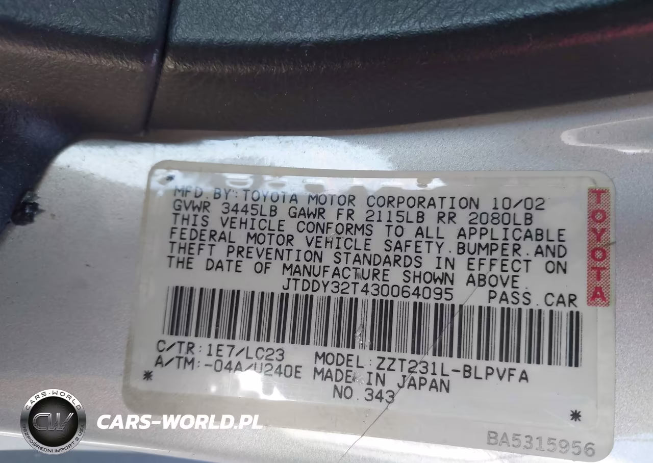 IAAI Nr: I-44623481 VIN: JTDDY32T430064095 Port: Los Angeles, CA