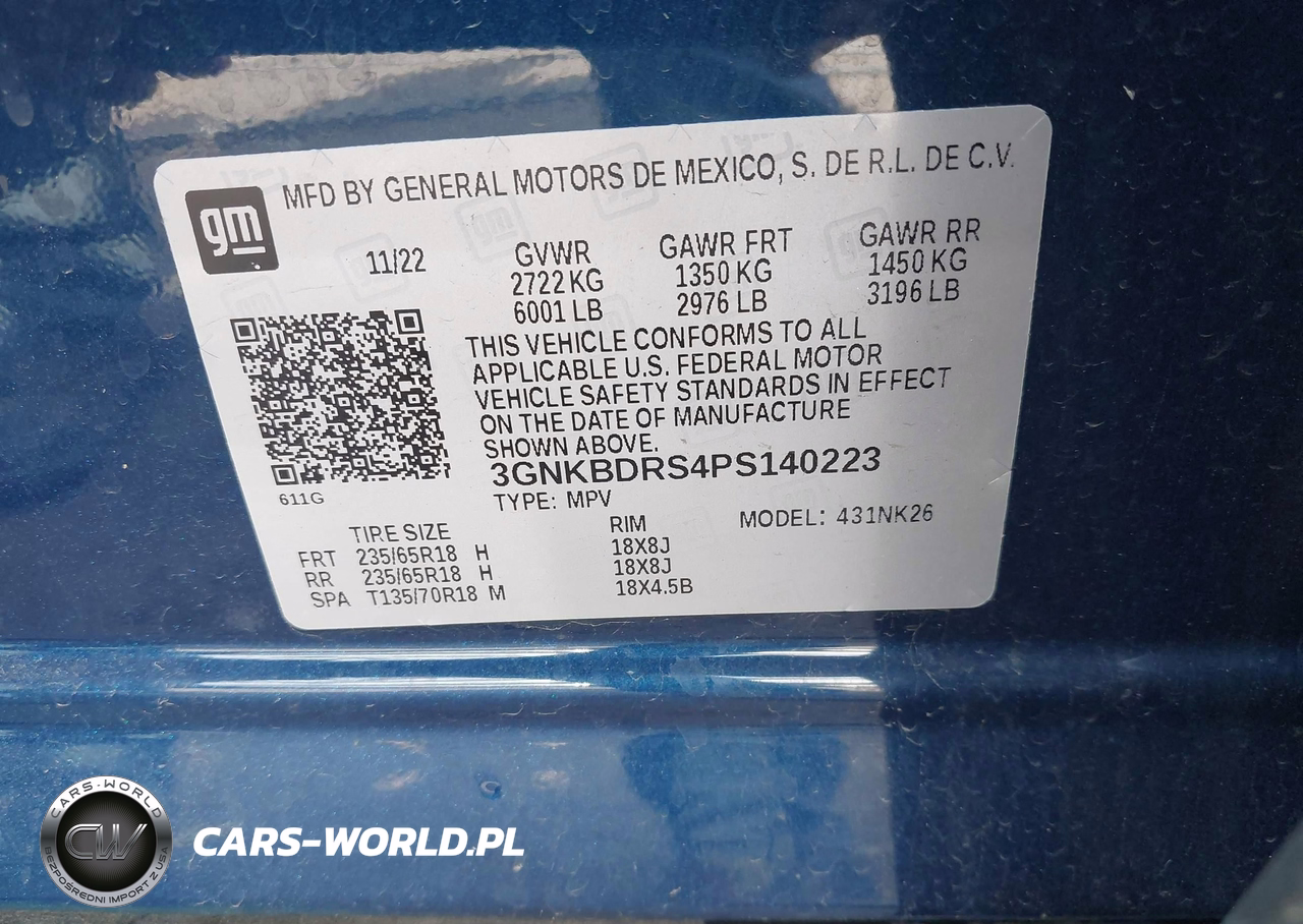 IAAI Nr: I-44623910 VIN: 3GNKBDRS4PS140223 Port: Indianapolis, IN