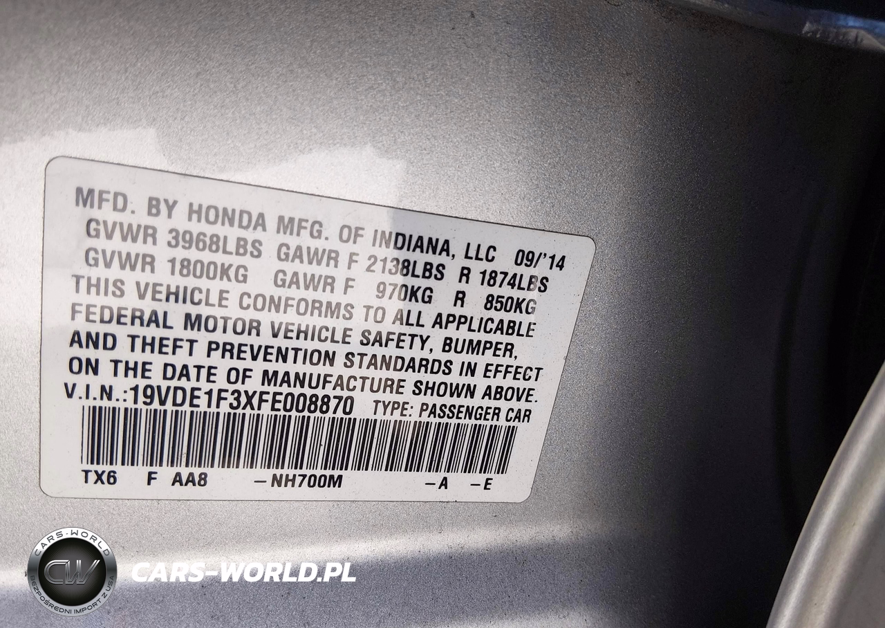 IAAI Nr: I-44624479 VIN: 19VDE1F3XFE008870 Port: Los Angeles, CA