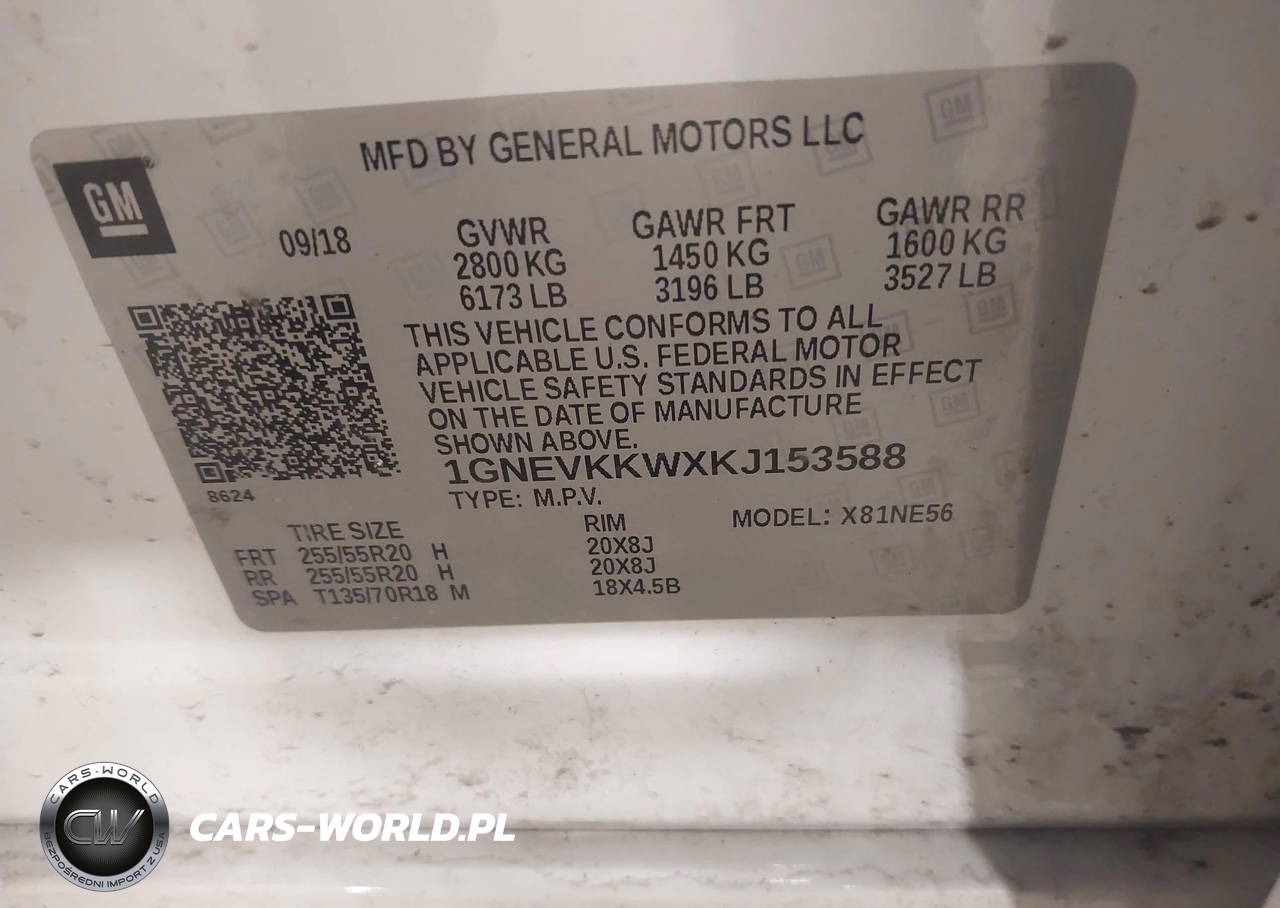 IAAI Nr: I-44624519 VIN: 1GNEVKKWXKJ153588 Port: Elizabeth, NJ