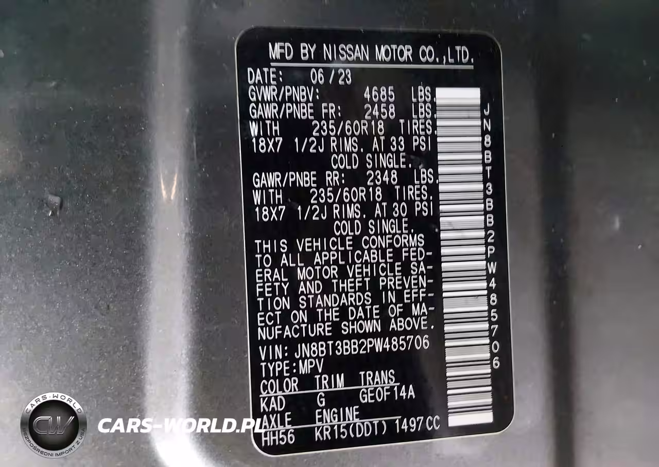 IAAI Nr: I-44625848 VIN: JN8BT3BB2PW485706 Port: Elizabeth, NJ