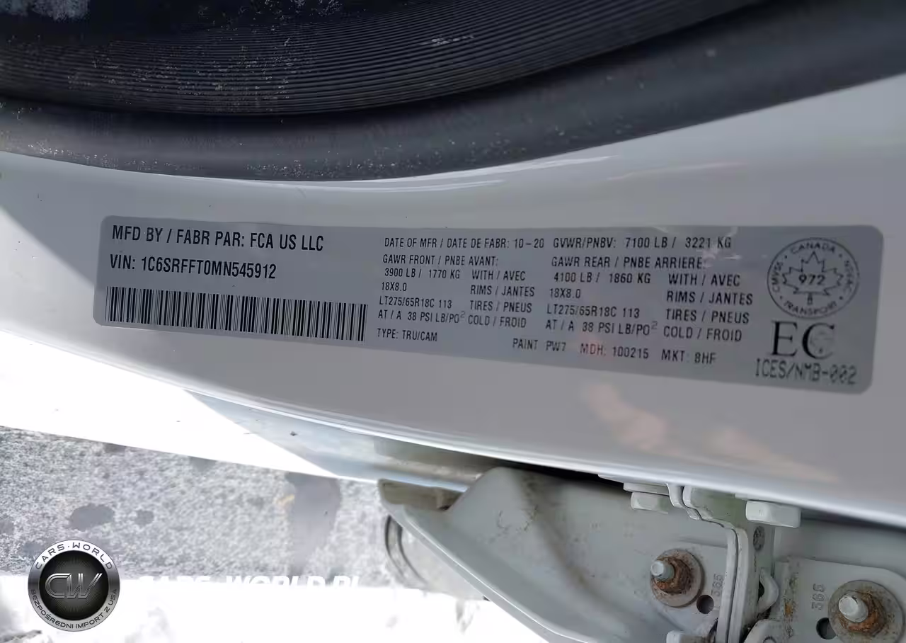 IAAI Nr: I-44625865 VIN: 1C6SRFFT0MN545912 Port: Elizabeth, NJ