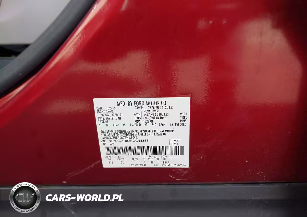 IAAI Nr: I-44626260 VIN: 1FM5K8B82FGC14355 Port: Elizabeth, NJ