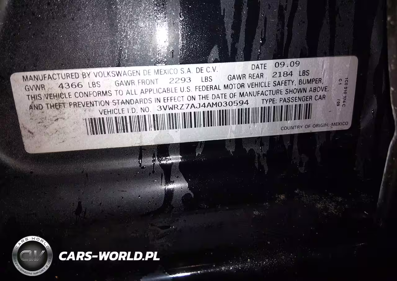 IAAI Nr: I-44626502 VIN: 3VWRZ7AJ4AM030594 Port: Elizabeth, NJ
