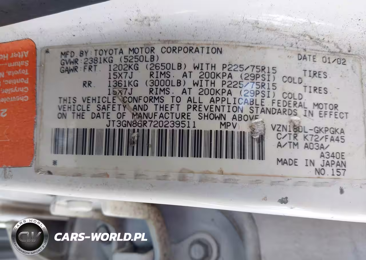 IAAI Nr: I-44627270 VIN: JT3GN86R720239511 Port: Savannah, GA