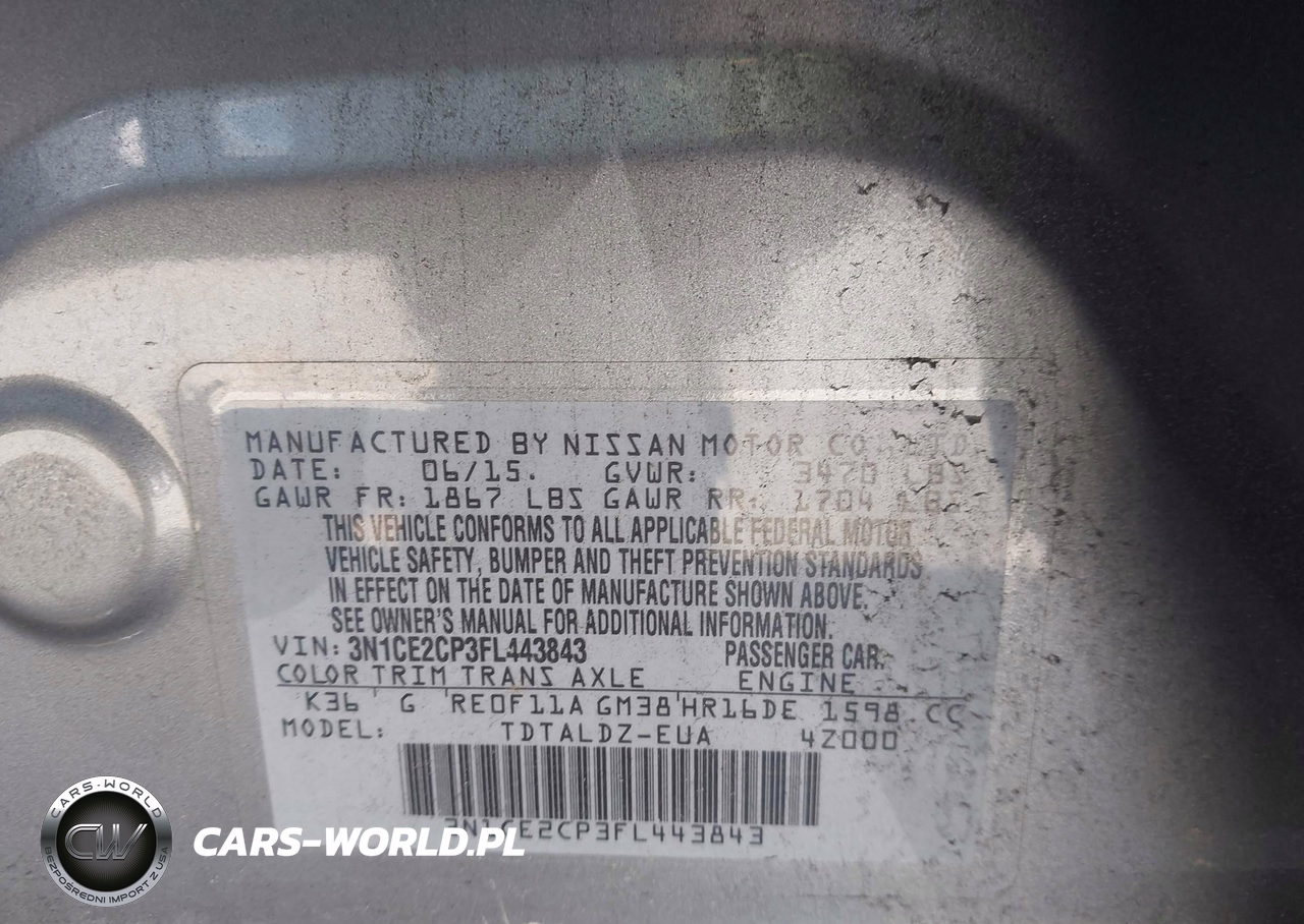 IAAI Nr: I-44627909 VIN: 3N1CE2CP3FL443843 Port: Savannah, GA