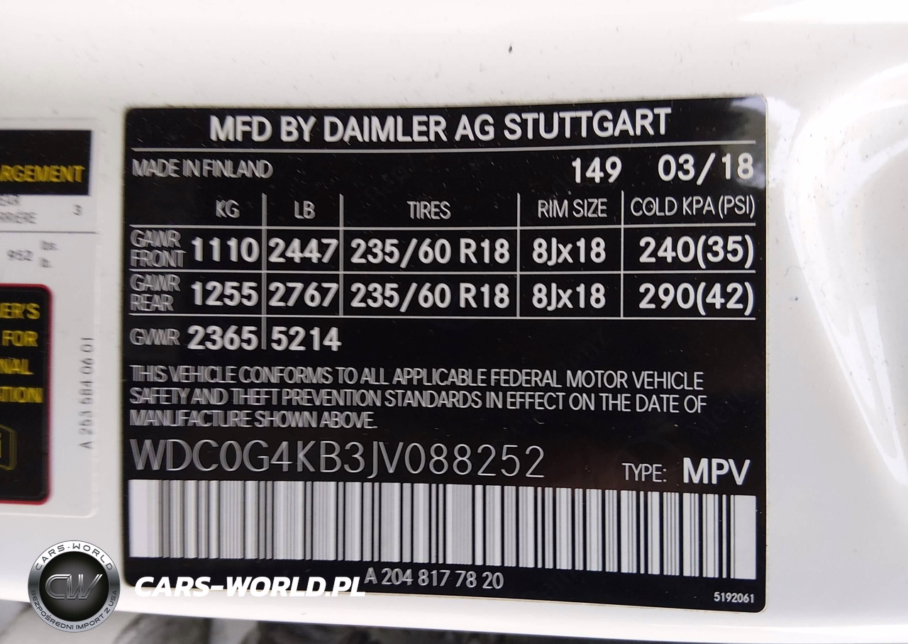 IAAI Nr: I-44628159 VIN: WDC0G4KB3JV088252 Port: Savannah, GA