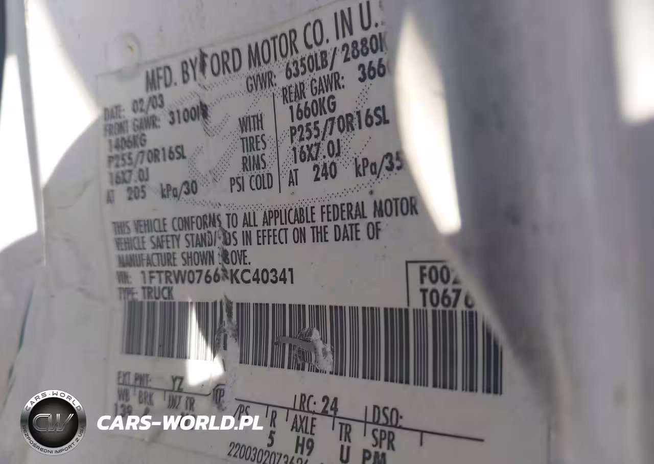 IAAI Nr: I-44628820 VIN: 1FTRW07663KC40341 Port: Savannah, GA