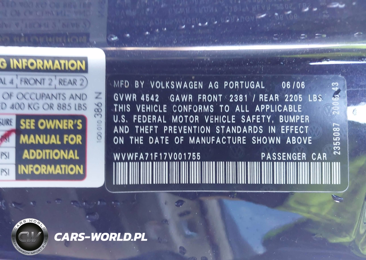 IAAI Nr: I-44628886 VIN: WVWFA71F17V001755 Port: Elizabeth, NJ