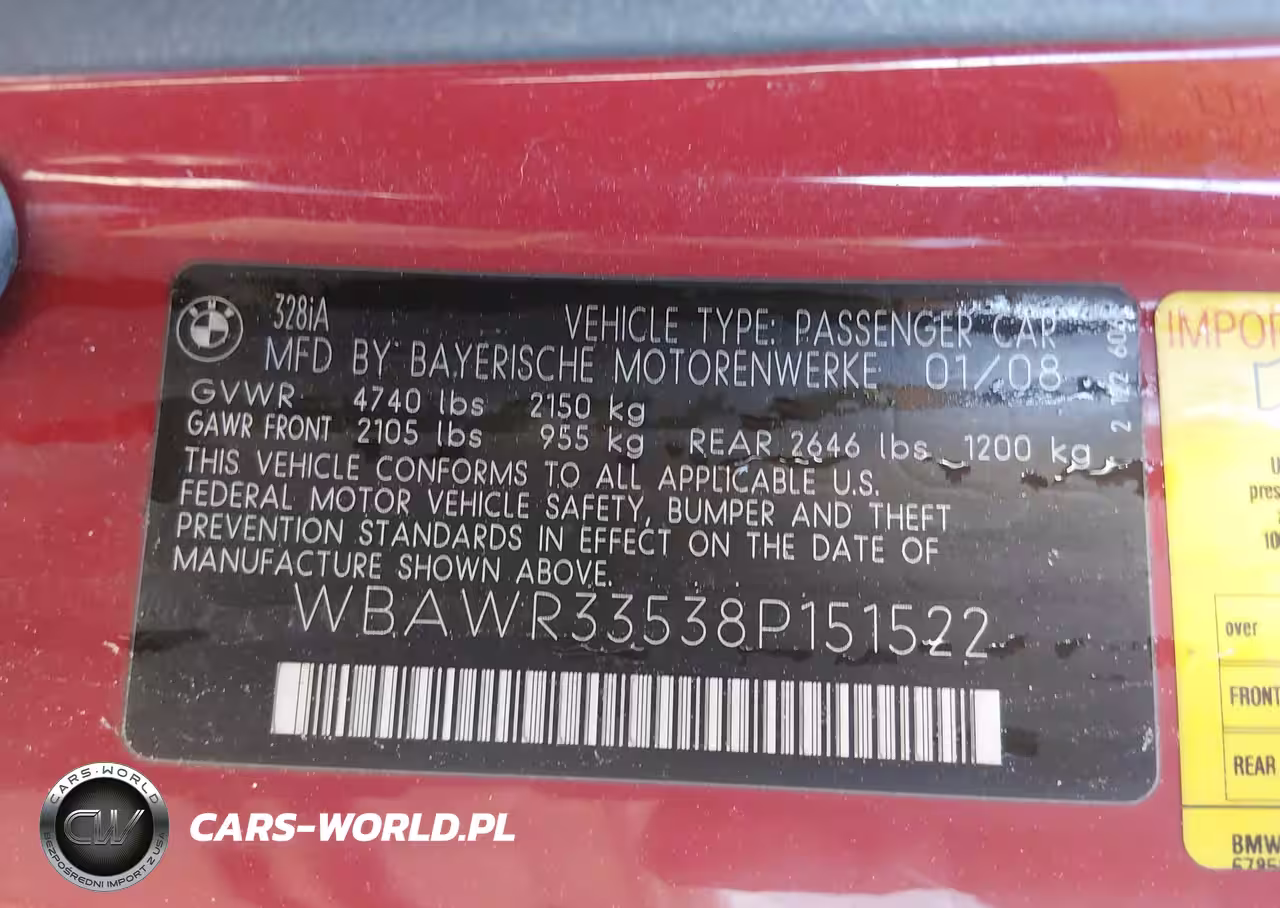 IAAI Nr: I-44629888 VIN: WBAWR33538P151522 Port: Savannah, GA