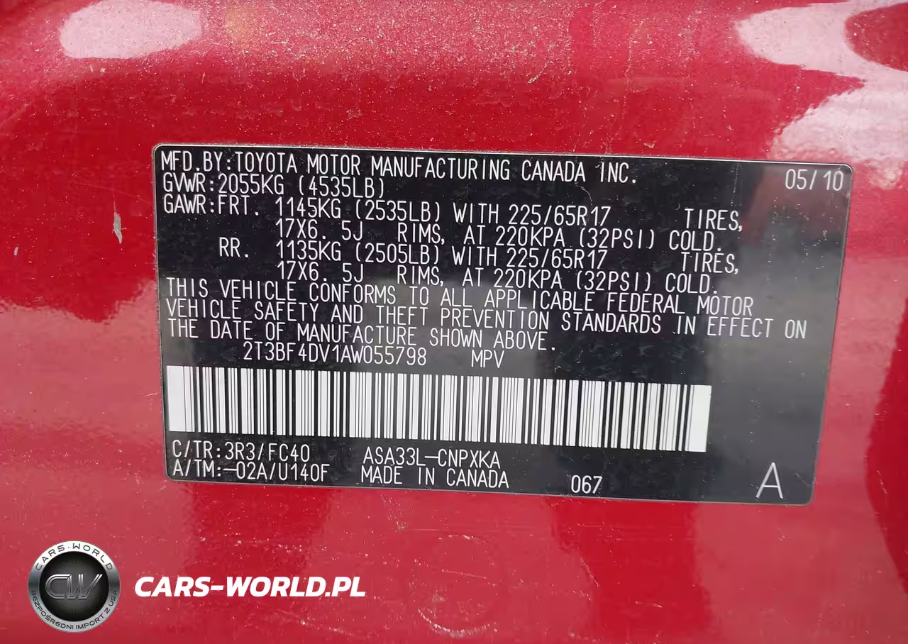 IAAI Nr: I-44630005 VIN: 2T3BF4DV1AW055798 Port: Elizabeth, NJ