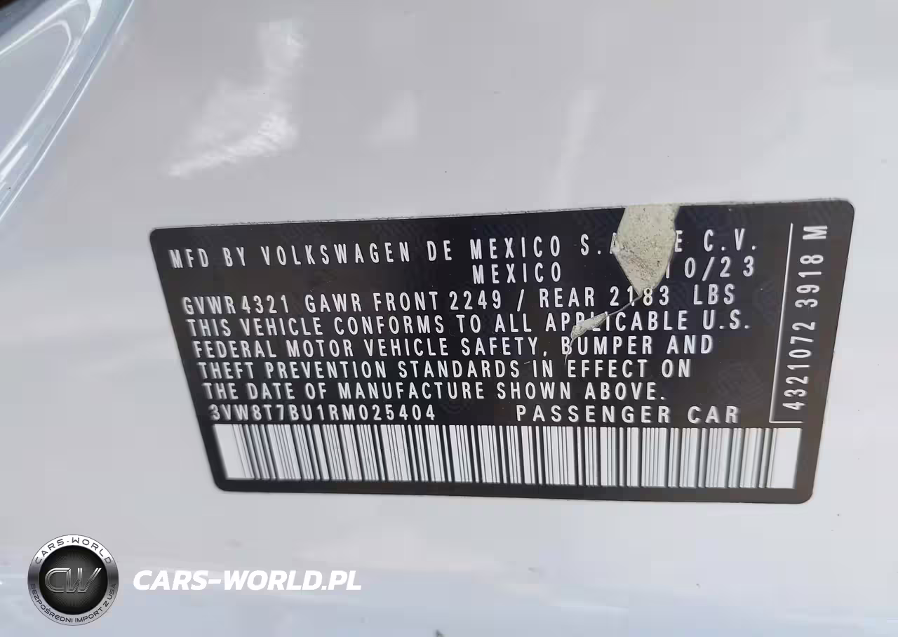 IAAI Nr: I-44631334 VIN: 3VW8T7BU1RM025404 Port: Los Angeles, CA
