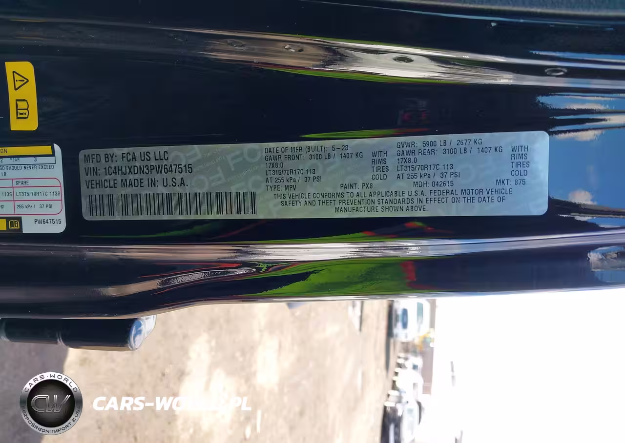 IAAI Nr: I-44631427 VIN: 1C4HJXDN3PW647515 Port: Elizabeth, NJ