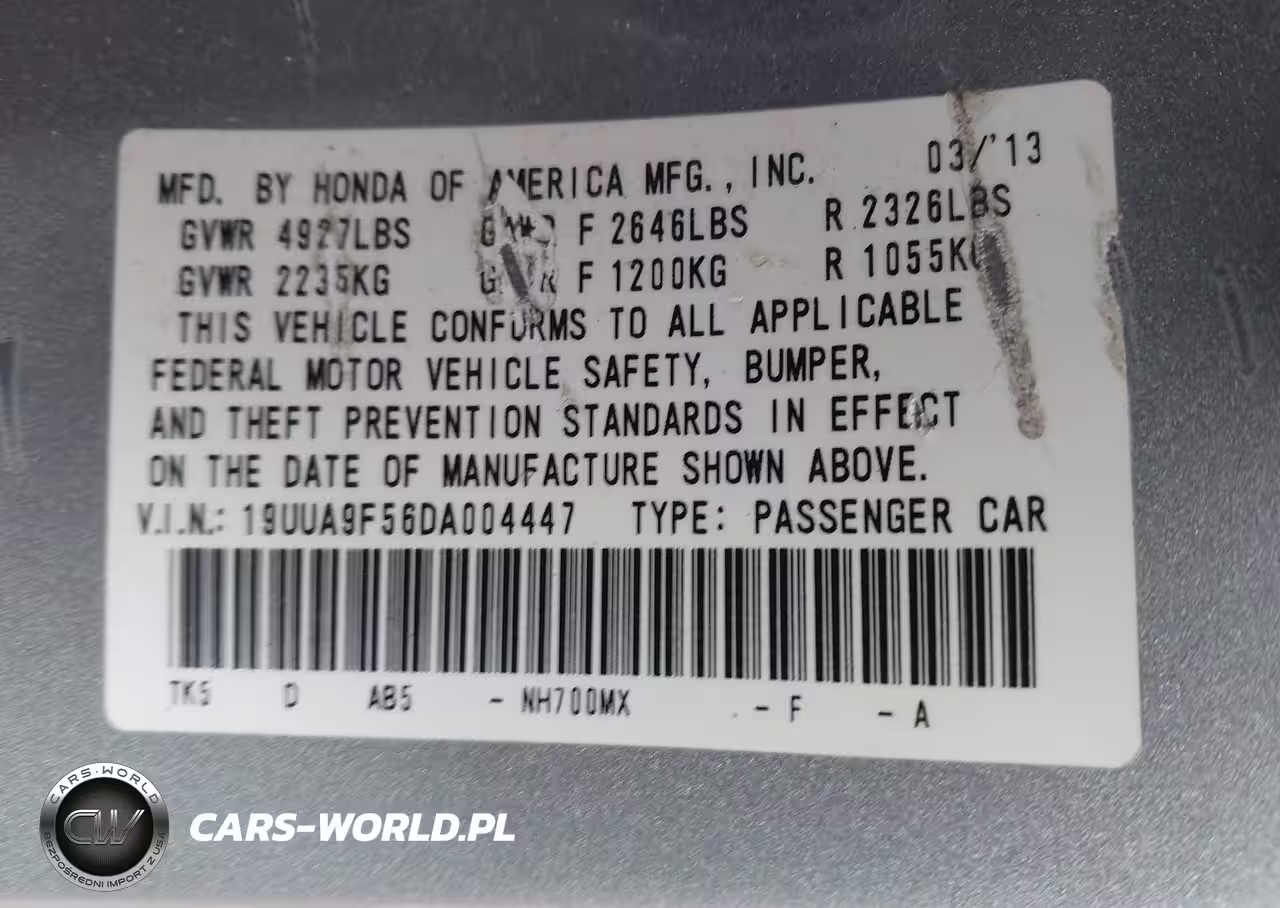 IAAI Nr: I-44632380 VIN: 19UUA9F56DA004447 Port: Elizabeth, NJ