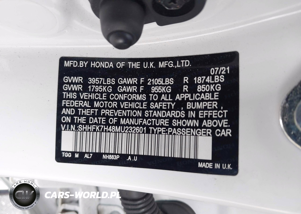 IAAI Nr: I-44633733 VIN: SHHFK7H48MU232601 Port: Savannah, GA