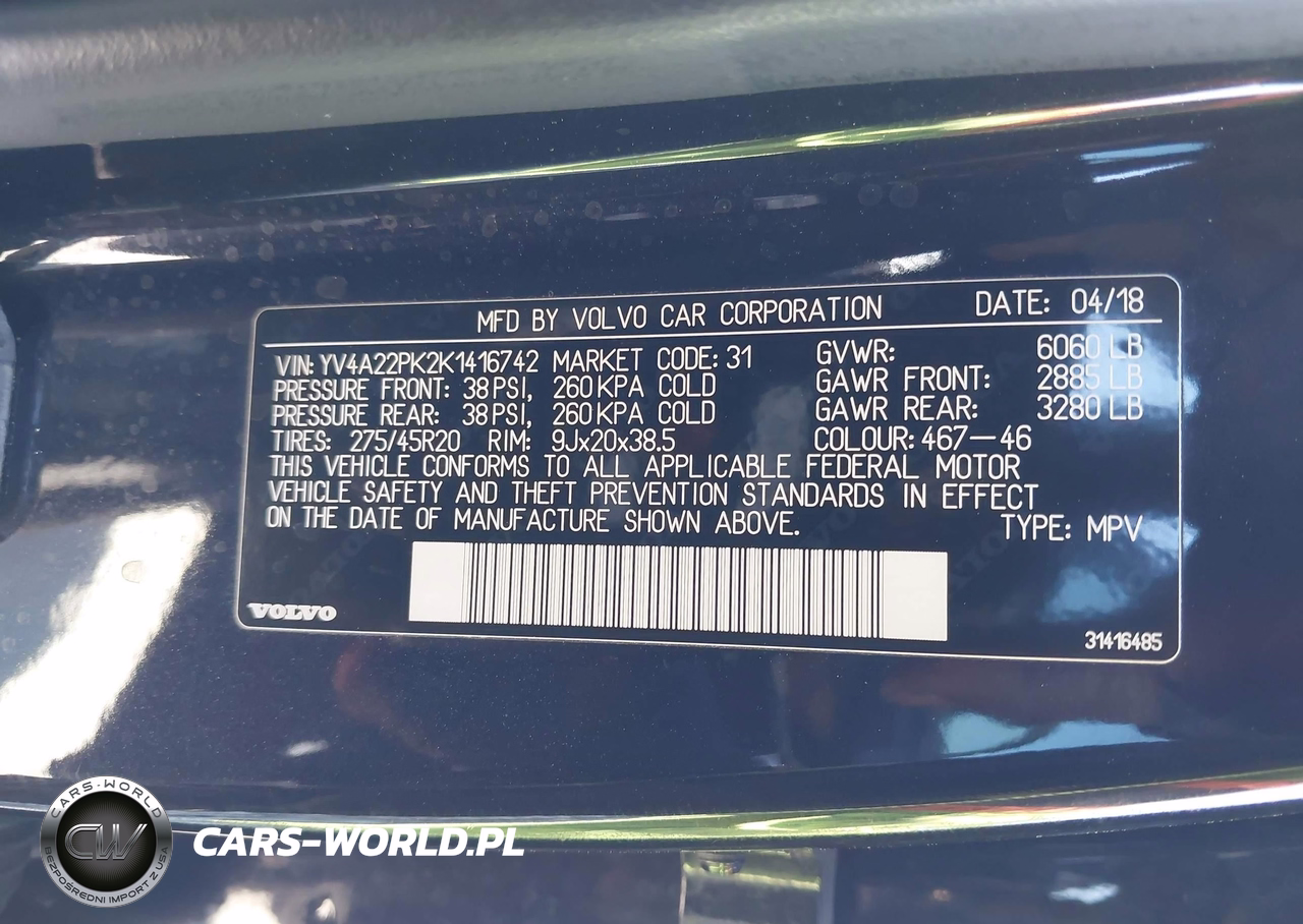 IAAI Nr: I-44633740 VIN: YV4A22PK2K1416742 Port: Houston, TX