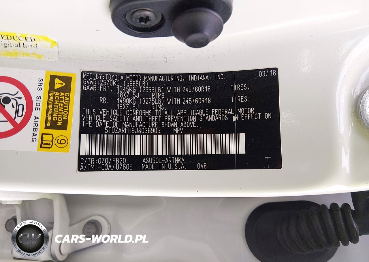 IAAI Nr: I-44633833 VIN: 5TDZARFH9JS036905 Port: Indianapolis, IN