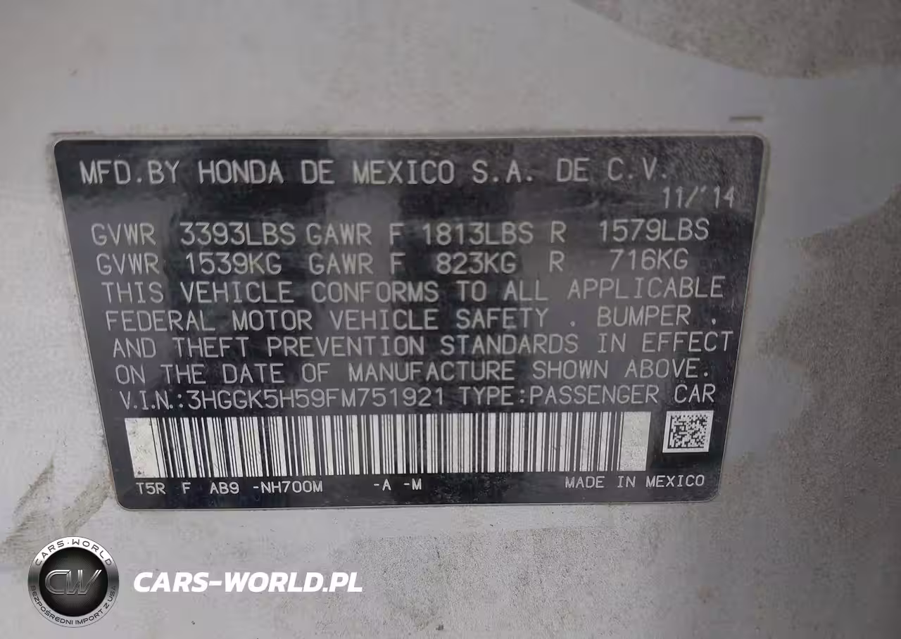 IAAI Nr: I-44633852 VIN: 3HGGK5H59FM751921 Port: Savannah, GA