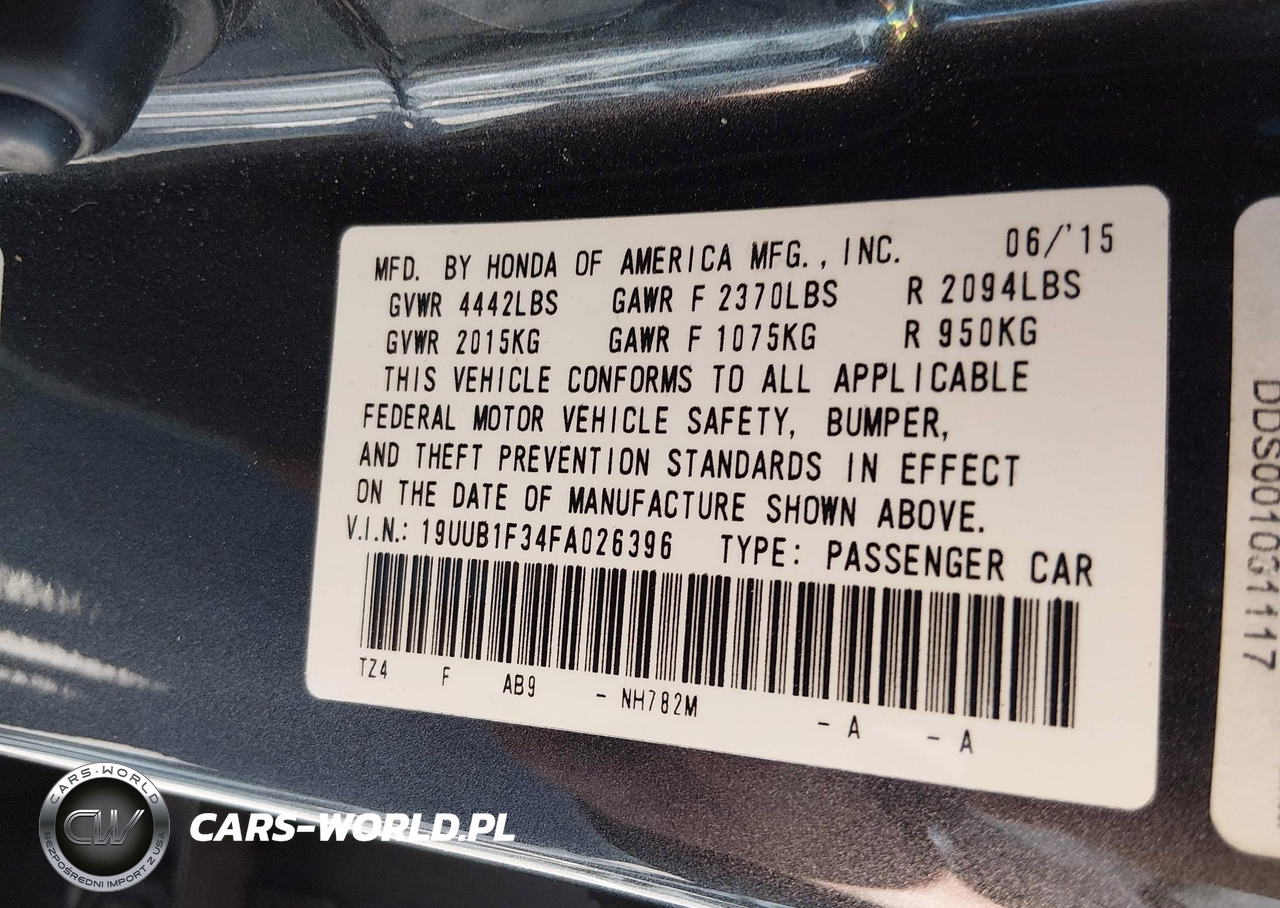 IAAI Nr: I-44634525 VIN: 19UUB1F34FA026396 Port: Houston, TX