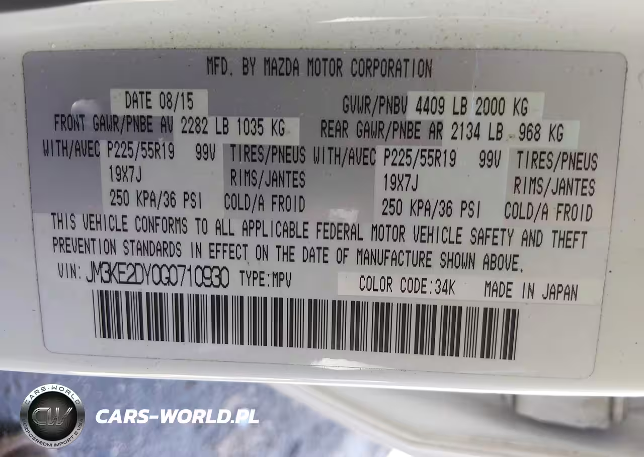 IAAI Nr: I-44634739 VIN: JM3KE2DY0G0710930 Port: Houston, TX