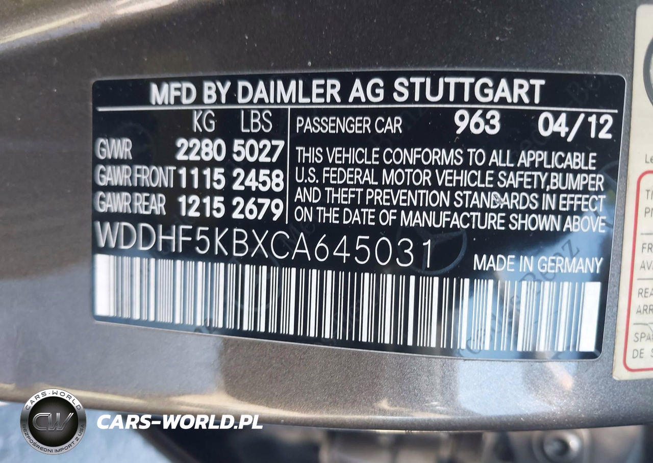 IAAI Nr: I-44634756 VIN: WDDHF5KBXCA645031 Port: Los Angeles, CA