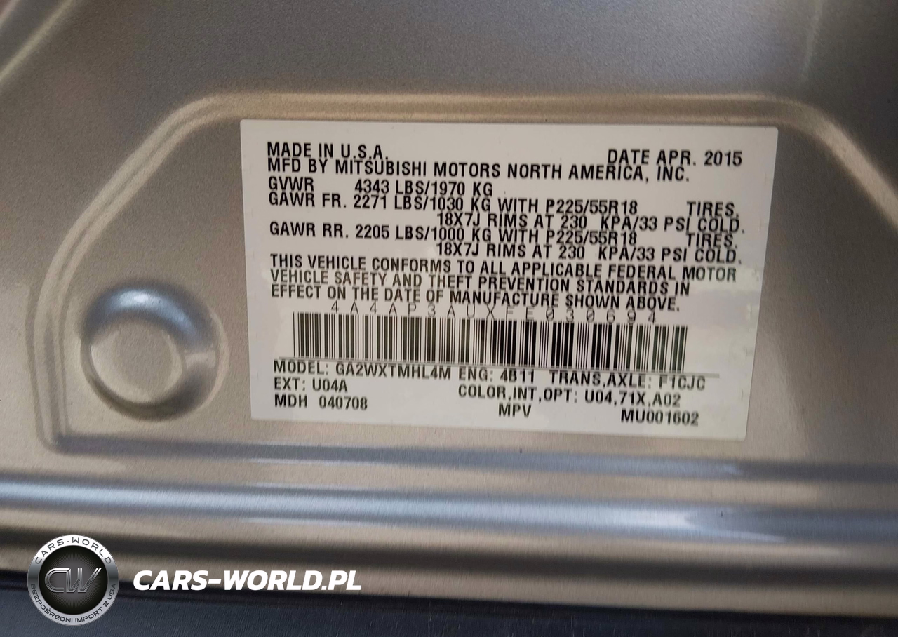 IAAI Nr: I-44634789 VIN: 4A4AP3AUXFE030694 Port: Elizabeth, NJ