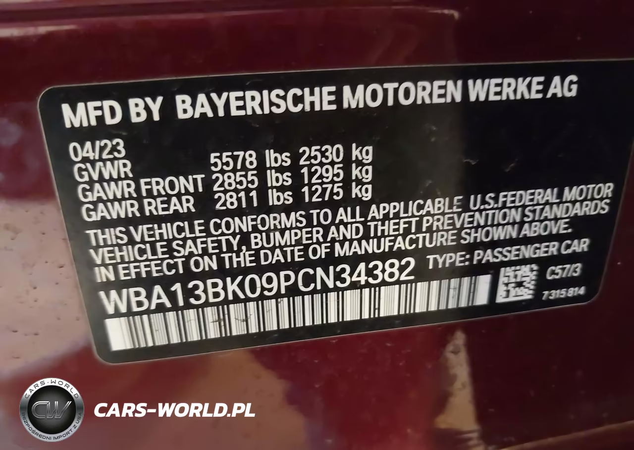 IAAI Nr: I-44635332 VIN: WBA13BK09PCN34382 Port: Indianapolis, IN