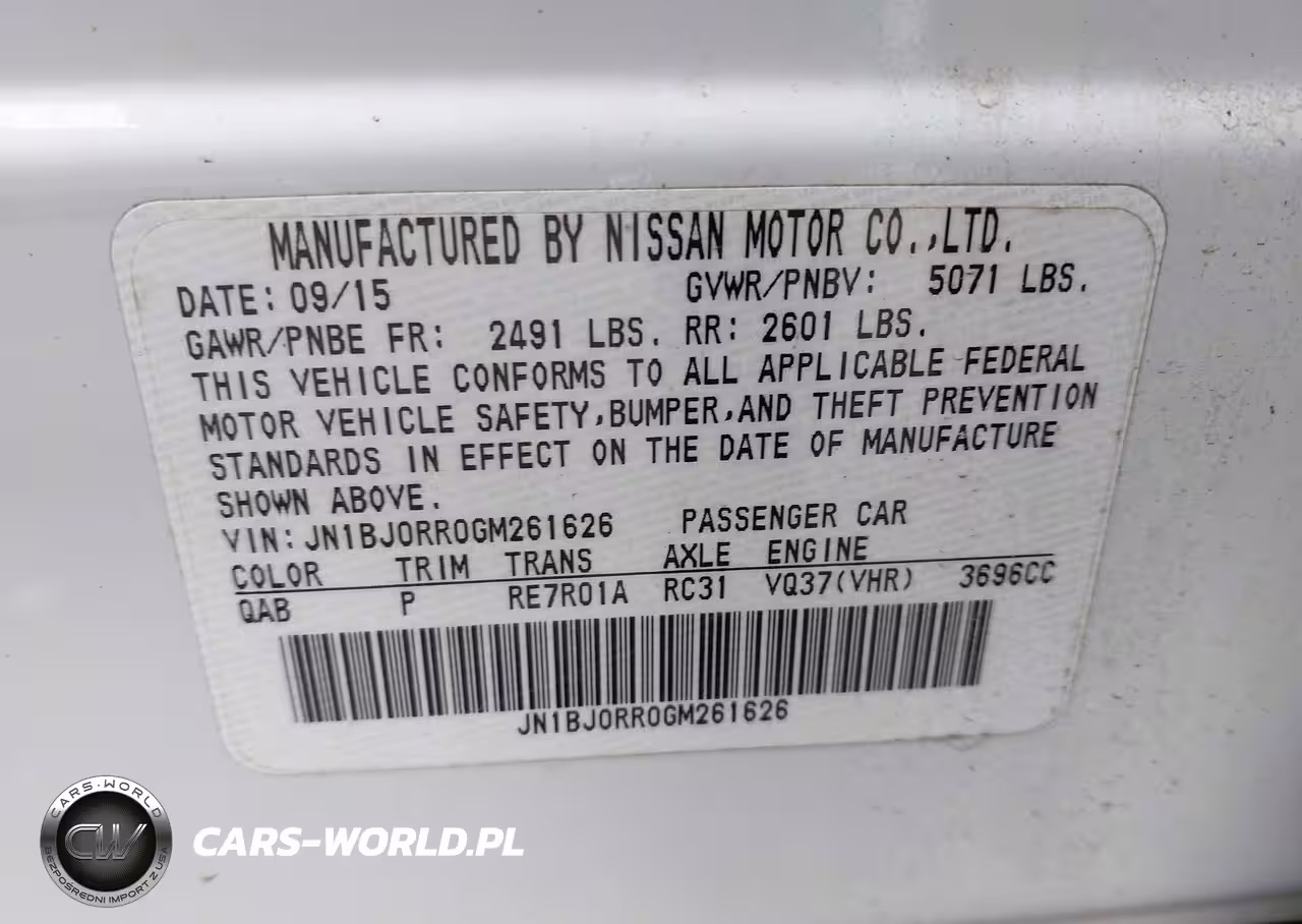 IAAI Nr: I-44635359 VIN: JN1BJ0RR0GM261626 Port: Elizabeth, NJ