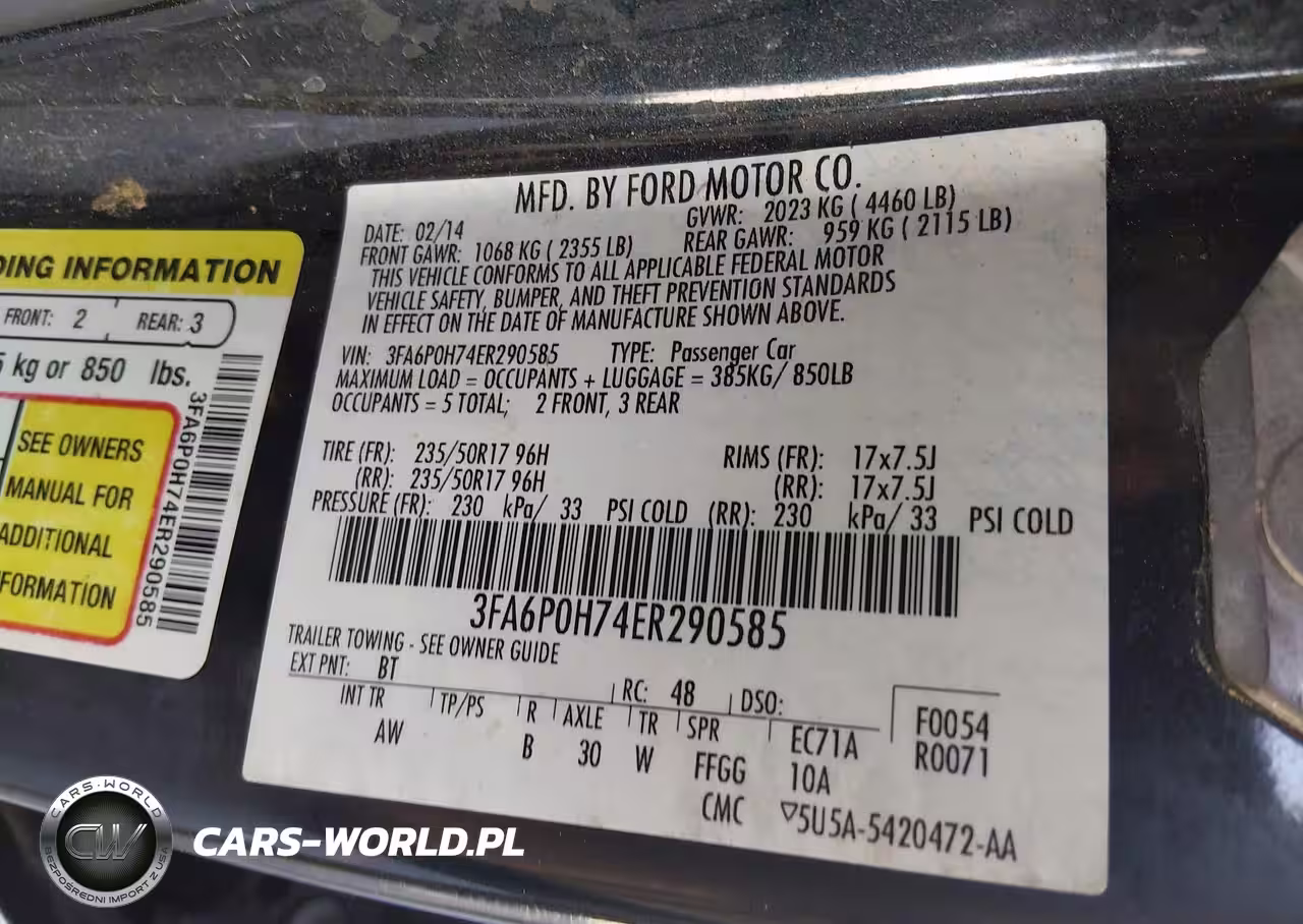 IAAI Nr: I-44635611 VIN: 3FA6P0H74ER290585 Port: Houston, TX