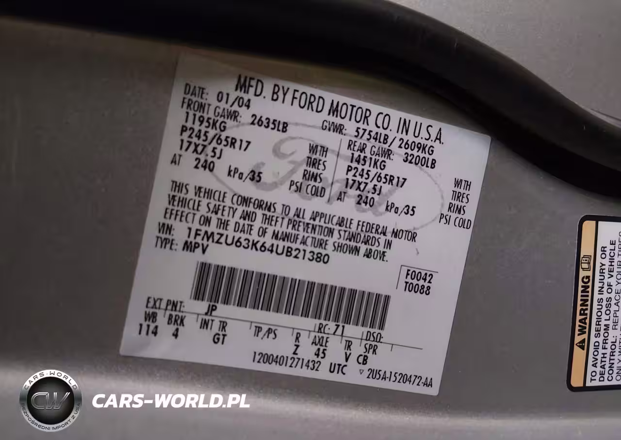IAAI Nr: I-44637084 VIN: 1FMZU63K64UB21380 Port: Los Angeles, CA