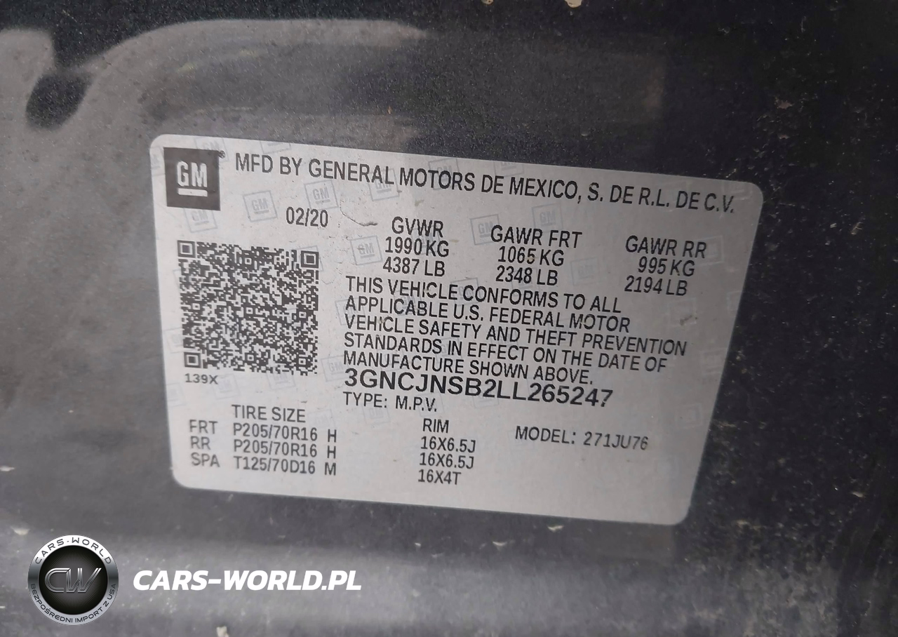 IAAI Nr: I-44637920 VIN: 3GNCJNSB2LL265247 Port: Elizabeth, NJ