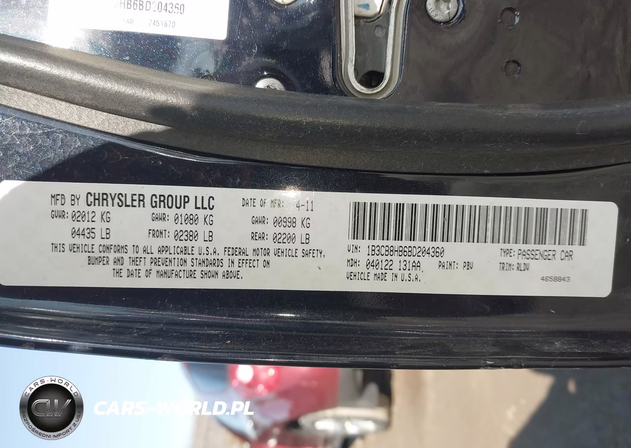 IAAI Nr: I-44638256 VIN: 1B3CB8HB6BD204360 Port: Indianapolis, IN