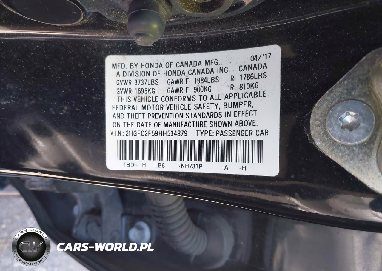 IAAI Nr: I-44638293 VIN: 2HGFC2F59HH534879 Port: Elizabeth, NJ
