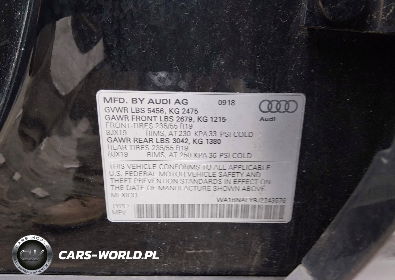 IAAI Nr: I-44639145 VIN: WA1BNAFY9J2243576 Port: Elizabeth, NJ