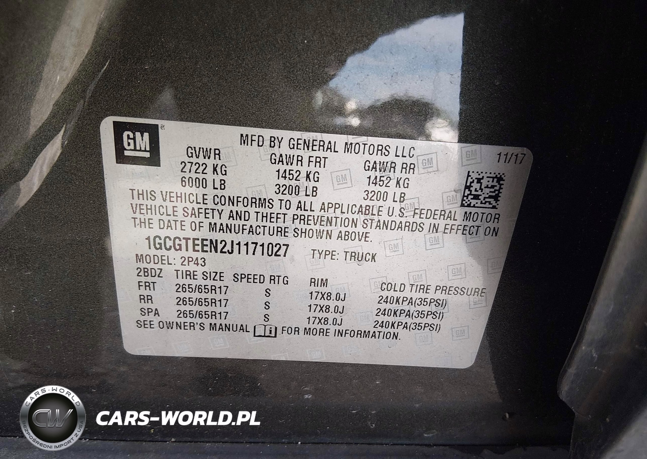 IAAI Nr: I-44639535 VIN: 1GCGTEEN2J1171027 Port: Savannah, GA