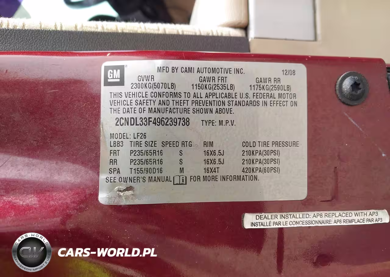 IAAI Nr: I-44639829 VIN: 2CNDL33F496239738 Port: Savannah, GA