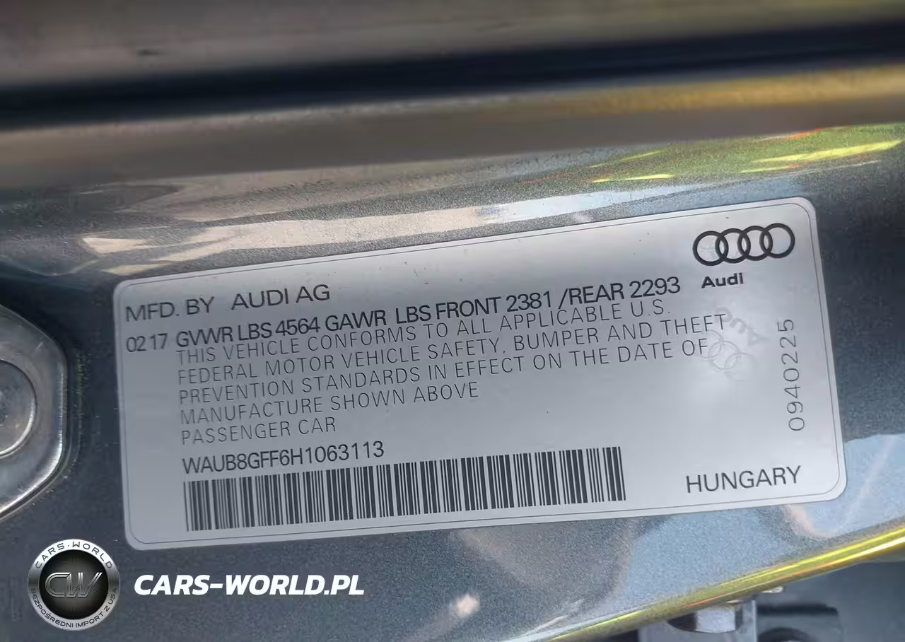 IAAI Nr: I-44639967 VIN: WAUB8GFF6H1063113 Port: Los Angeles, CA