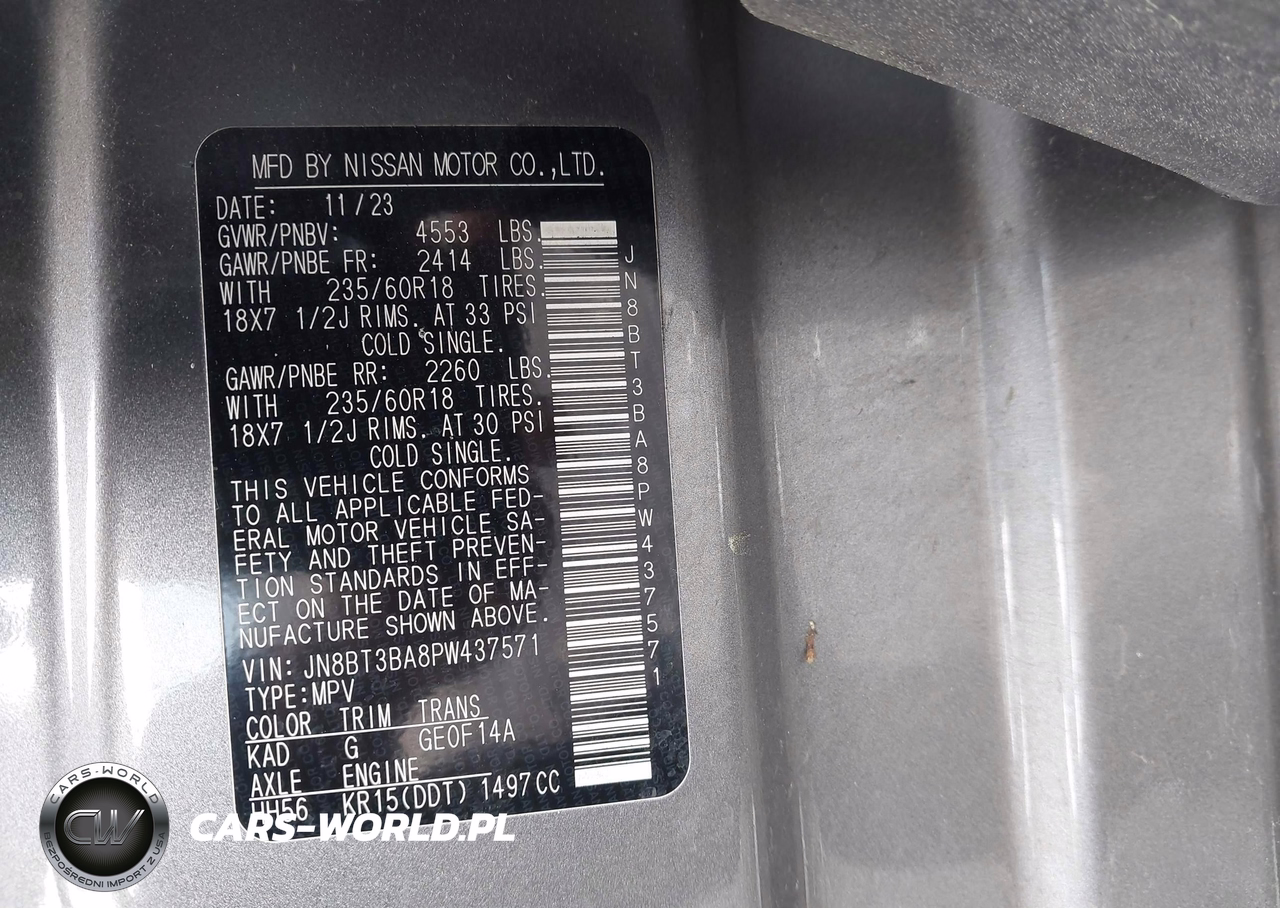 IAAI Nr: I-44640140 VIN: JN8BT3BA8PW437571 Port: Savannah, GA