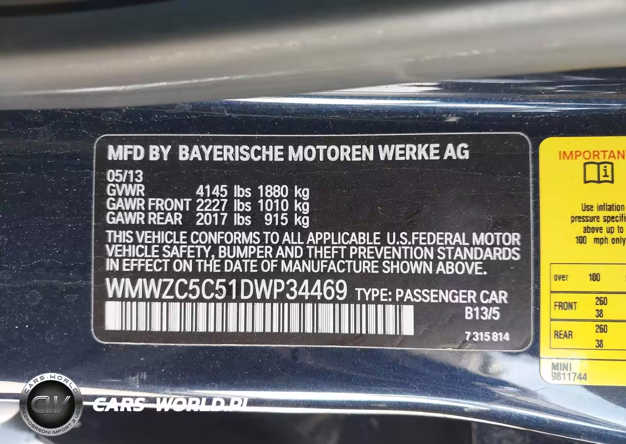 IAAI Nr: I-44640648 VIN: WMWZC5C51DWP34469 Port: Los Angeles, CA