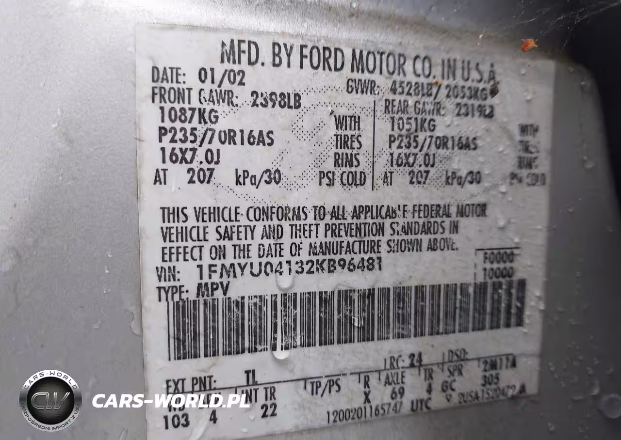 IAAI Nr: I-44641111 VIN: 1FMYU04132KB96481 Port: Savannah, GA