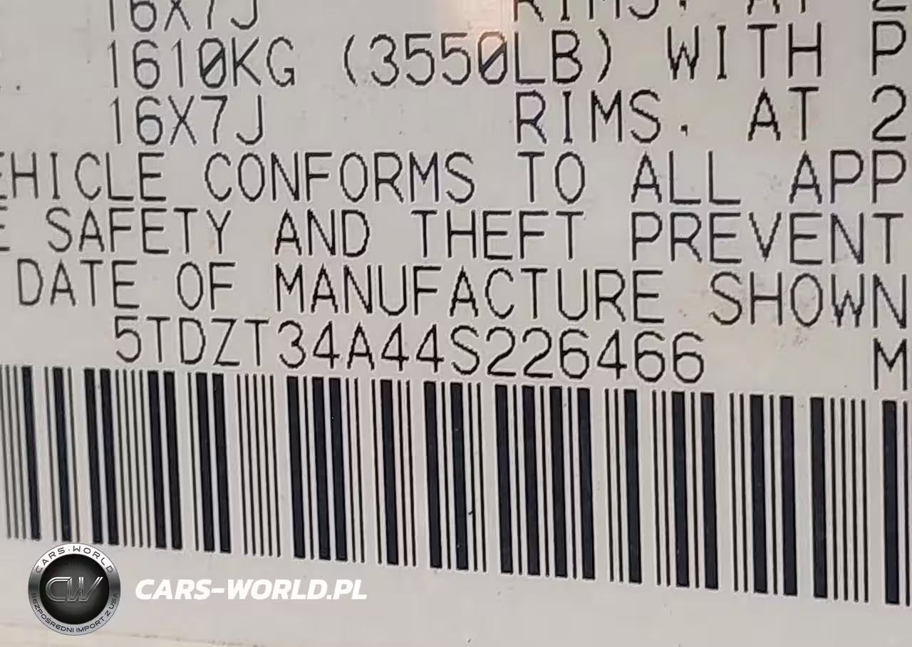 IAAI Nr: I-44641282 VIN: 5TDZT34A44S226466 Port: Savannah, GA